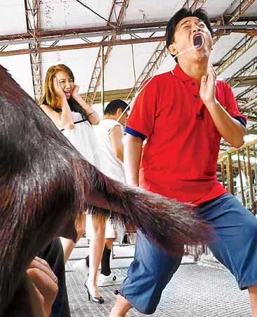 中新网10月25日电 台湾媒体报道,吴宗宪(右)跟女星Linda日前在台湾南部牧场录台视《综艺大胜战》,被制作单位要求现场喝羊乳,看到热腾腾的羊乳直接“射”过来,Linda吓到花容失色,反而是吴宗宪自得其乐,不仅歪嘴接奶,还喝到溢奶。