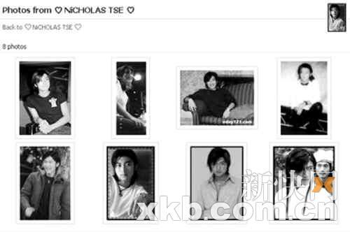 为了一探究竟,记者根据M提供的网址,也到该网站上注册了一个用户名。输入“NicholasTse”,随即便搜索出好几页同名用户,不过在众多老外中,很快就发现了非常明显的黄皮肤——谢霆锋的头像。打开之后,里面有小谢的档案,包括历年唱片和电影,还有家庭状况,下面相册里还贴了很多他的帅照。而在他的好友栏,记者发现了“绯闻女王”陈见飞(陈冠希的姐姐)、“露点之王”郑希怡等。