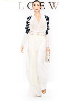 据香港太阳报报道,名模Mikki、Eunis、Ana R.、刘丹及戴小奕等昨日为LOEWE 08春夏时装走秀,为设计师Jose Enrique Ona Selfa的告别作作最后致敬。Mikki除真空上阵演绎透视装外,更穿上Deep V连身裙,大秀火辣身材!