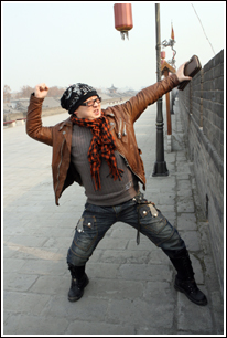 彭波在城墙上再次“疯狂”起来。记者尚洪涛摄
