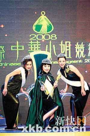 由香港TVB主办的2008年度“国际中华小姐”(原名“国际华裔小姐”)竞选决赛,前晚移师佛山举行。本届港姐冠军张嘉儿又一举拿下了“华姐”亚军的头衔,既在情理之中,也属意料之外。而巴黎小姐朱璇,凭借出挑的外表和精湛的演技,最终取得了冠军与“最青春小姐”两个奖项。