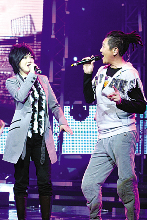 热闹的场面里,自然也少不了刻意的煽情环节。对弟子杉籽伽厚爱有加的辛晓琪师徒齐心,共同创作了一首歌唱给大家听,此歌由辛晓琪作词,杉籽伽作曲。唱完后,辛老师更十分重情地送给了弟子两件礼物,一件是杉籽伽的偶像张国荣与她合拍的珍贵私人照片,一件是一个昂贵的专用麦克风。在看到辛晓琪拿出照片时,杉籽伽就忍不住流下了感谢的眼泪。 本报记者 张 漪