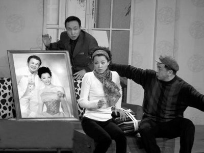 黄宏、董卿、巩汉林正在表演小品《开锁》。