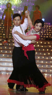 昨天黄晓明现场演绎电视剧《新上海滩》的主题歌《就算没有明天》,同时献上他的首次“荧屏舞”。不过黄晓明在前不久推出的专辑中编舞遭人诟病,昨天他在接受记者采访时也坦白表示:“我跳舞是不咋的,但是我很想跳,也想跳给大家看,只是一直没有很多时间练习,但是我每次跳舞都很努力和认真,也希望观众能够给我机会,因为每个人都会有这个过程。”因此他此次还接受首届《舞林大会》的“黑马”陈志朋的挑战,希望“雪耻”。不过黄晓明强调,自己参加盛典并不只为了秀舞技,更重要的是为雪灾灾区同胞献出一份爱心。近年来,黄晓明随着《新上海滩》等电视剧的热播,事业风生水起,登上了国内一线小生的地位,同时也受到了众多商家的青睐,去年一年接了高级汽车、移动通信等众多广告,成了名副其实的“广告吸金王”。昨日他透露,最近他又以天价签约一国际奢侈品的国内首位代言人。据悉,此次代言费用也是世界名牌的价格了。因此在听闻主办方倡议捐款的时候,他义不容辞捐出10万元,力压群雄。