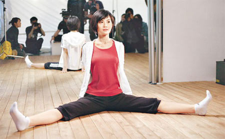 阿Sa连续四小时保持挺腰压腿的姿势,但却没半点怨言。