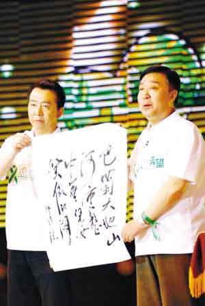 地震灾区重建需要全社会的力量参与,日前,天津卫视《笑傲江湖》节目组录制了《点亮希望赈灾义演》特别节目,发动相声界人士,共筹得善款103万元,用于修建“蔚川小学”,这是目前为止第一场相声界赈灾义演活动。据悉,该节目将于6月1日晚播出。
