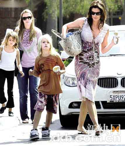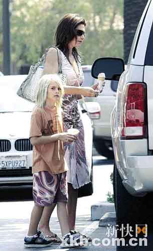 上周末,名模辛迪·克劳馥带着儿子和女儿出游,享受闲暇时光。辛迪一身夏日休闲装扮亮相,虽已年过40岁,但身材非常苗条。辛迪的儿子已经8岁,是个金发小帅哥。这个帅气的小家伙和妈妈都手拿冰淇淋,其乐融融。辛迪的女儿6岁了,眼睛和母亲长得很像,还遗传了母亲的棕色头发,非常美丽。