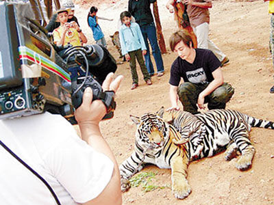 方力申日前到泰国老虎寺拍摄《向世界出发》第三辑,与张牙舞爪的大老虎并肩而行,他给老虎洗澡、喂奶。为安全起见,事前他已买高额保险并打破伤风针,以防万一。