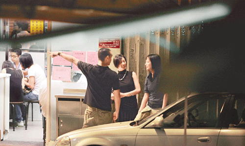 期间见三人坐在楼下位置边食面边饮酒,但当颜颖思发现门外有记者拍照时,即与友人调位转往上层。直至十一时许,颜颖思先叫女友人到门外找的士,其后急步冲上车,而尾随的男友人为免记者追访颜颖思,则乘另一部的士阻截记者去路。