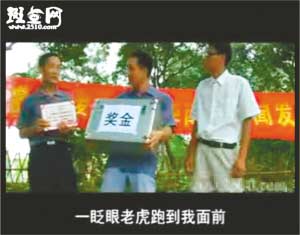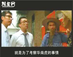 周正龙伪造华南虎照片真相大白后,广大网友也没闲着。记者昨日发现,最近一段近30分钟的视频电影被传到网上,片里长相酷似周正龙的演员上山找虎还接受采访,最后事情败露后摔下山崖而失忆,抱着老虎模型郁郁而终。