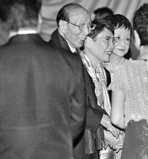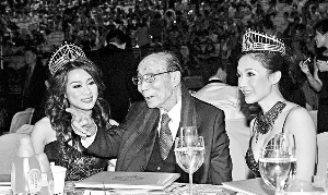 年过百岁的无线行政主席邵逸夫爵士(六叔)和太太方逸华也有到场欣赏港姐决赛,近日无线多次传出卖盘,所以这次有可能是六叔在易手前最后一次看港姐决赛。