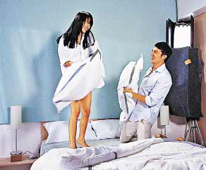 日前,蔡依林在为洗头水拍摄代言广告。她在广告中与男模在浴室内相拥,展示乌黑长发,又穿性感白恤衫和男模在床上用枕头互打嬉戏,随后又与男模在浴室相拥转圈,展示一头秀发。据悉,光一个甩头发的镜头,就演足两小时,蔡依林风情十足的姿势不仅让男模直言难抵诱惑,连工作人员也戏称她“招桃花”。