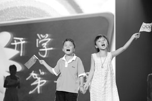 今天上午央视开始录制特别节目《开学第一课》,奥运开幕式上的“四小龄童”于昨晚走进央视录播棚进行练习和走台。抗震小英雄林浩和《歌唱祖国》表演者林妙可一起合作了一首歌。