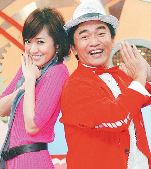 东风《王牌大明星》首录,主持人侯佩岑(左)与吴宗宪。