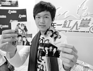 陈琪在红人堂展示他与金莎等明星的合影。见习记者 王鹏 摄
