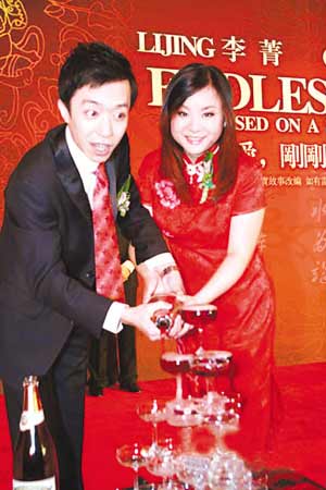 昨早10时,郭德纲、于谦、小何、春妮等应邀前来。郭德纲和于谦默契地以“白T恤蹭花了”的服装出现,颇为喜气。他更在留言板上题词“真是太刺激了!!”当天婚宴的主持由郭德纲担当,他表示自己很少主持此类婚宴,但台上与新郎李菁一唱一和的搭档风趣幽默,令在场所有嘉宾开怀不已。他更形容新娘“五大三粗”语含深意,据知情人透露,新娘极有可能已经怀孕。