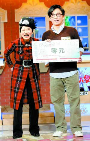 吴宗宪第一题就答错,奖金零元,主持人张小燕气得拿起板子敲打他。