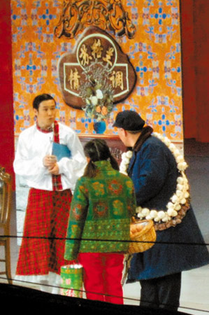 前日下午,春晚在中央电视台演播厅进行了第二次彩排,赵本山的新小品《不差钱》终于亮相。经历了小品一稿的“自毙”后,赵本山完全抛弃了“黑土”路线,布景由农村家庭,改为“铁岭市最豪华的饭店”———他将在这里为孙女毛毛上星光大道的事情宴请毕福剑,菜肴是他身上挂着的葱、蒜,着“苏格兰裙装”的小沈阳做侍应生,故事由此展开。