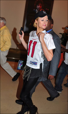 北京时间2月2日(北美时间2月1日),美国大型体育盛况超级碗在众多明星的歌唱中缓缓的拉开了序幕,台上明星璀璨,台下更是星光熠熠,当天晚上(2月2日)记者就拍到了豪门名媛帕丽斯·希尔顿。当晚的帕丽斯·希尔顿身穿一身运动服装,但是仍然难掩甜美性感,据悉当晚希尔顿就程飞机飞回了英国伦敦。