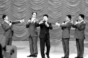 昨晚,央视2009年元宵晚会如期播出。由于是录播,所以“我最喜欢的春节联欢晚会节目”评选也已提前揭晓,《不差钱》拿下小品类一等奖,刘谦也夺得曲艺类一等奖(本报昨日已报道)。在元宵晚会上,小沈阳和刘谦的名字反复被众多明星提及,而刘谦、朱军更是模仿小沈阳的音调,引来阵阵笑声。