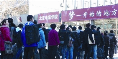在影视界,“中戏”、“上戏”、“北电”呈三足鼎立之势,其地位无人可以撼动,人称“明星摇篮”。近年来这三所学校艺术考试持续升温,报考人数屡创新高。在北电,表演专业一直被认为是最难考的专业,虽然今年的招生人数由往年的30人增加到75人,报名人数却高达4234人,淘汰率为98.2%。即便知道面临着如此残酷的竞争,可那些怀揣着明星梦想的俊男靓女们,仍不远万里,从五湖四海为了一个共同的目标走到了一起,怀着明星梦挤上这座独木桥。