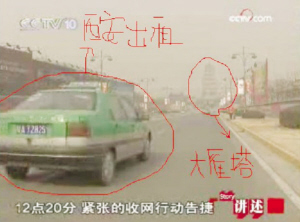 虽然事件精彩,情节也很紧凑,但是有眼尖的观众发现,在节目的18分22秒到18分36秒,竟然出现了与整个事件不相搭的西安大街的画面。西安著名景点钟楼、鼓楼和大雁塔都出现在画面中,甚至还有尾号是陕A开头的出租车(西安出租车)开过。