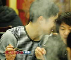 “小沈阳笑转2009全国巡演”在北京首站演出大获成功后,小沈阳3月8日带着妻子沈春阳和刘老根大舞台的师兄弟们在一家酒店里涮火锅吃庆功宴。众人胃口大开要了两瓶红酒,一边喝酒一边海聊。小沈阳不时歪头和身旁的妻子说悄悄话。