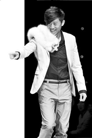 夏雨、陈羽凡、景岗山等明星昨天齐齐亮相国际时装周,为好友陈娟红的服装走秀。夏雨肩披皮草登台,很有模特范儿。 记者蒲东峰 许青红摄