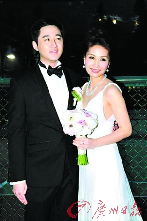 一对新人于当晚6时许接受记者访问。消瘦了不少的Fiona穿上Dorian Ho设计的V领婚纱,搭配由PASPALEY赞助的价值200多万港元的珍珠项链现身,打扮雍容华贵。当记者要求新人接吻拍照时,新郎因害羞不肯就范,最后要Fiona嘟嘴作亲嘴状。Fiona透露:“婆婆送了一块劳力士手表给我,代表要添丁。”