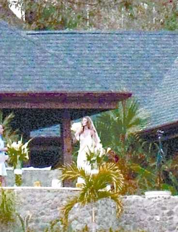 摄影师冒着“生命危险”拍下的婚礼现场图。依稀可见身穿白纱的吉赛尔·邦辰。据报道,保镖们在“誓死”保卫主人时,新娘子对婚礼上的“枪战”一无所知。