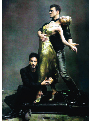 日前,同为时尚达人的贾斯汀和莫斯(中)联手著名时尚设计师马克·雅可布斯(左),为最新一期的《时尚》拍摄了写真。这张以“激发美丽”为题的照片由资深时尚摄影师安妮·莱伯维兹掌镜。雅可布斯在评价莫斯时表示:“吸引我的并非她的个人时尚风格,而是她本身及其生活、灵魂。”