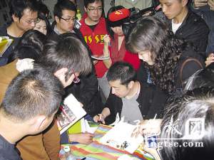 位于五台山的先锋书店本来是一个很幽静的地方,因为导演贾樟柯的到来,幽静被打破。昨天上午,原定于11点举行的签售活动,没等贾导落座就被数百名大学生围得水泄不通。书店准备了300多本《中国工人访谈录》,150多本《贾想》,还有100多本《一个人的电影》。记者透过人群,看见贾导极其认真,他不只是为读者签上自己的名字,而是先把读者的名字写在前面,他的助理说贾樟柯三个字笔划多,肯定不如于丹签得快。接近中午12点,等着签名的队伍还没有散去,600本书不够签的。
