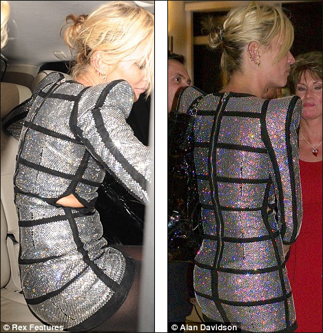 4月21日身穿闪亮宇宙感连身裙的凯特·莫斯现身自己的派对,远远开去相当抢眼,但是派对后半段,凯特·莫斯可能是喝酒喝多,居然撑破了自己的连身裙,露出肚子旁边的肥肉,让我们不仅汗颜,街拍女王也有失误。