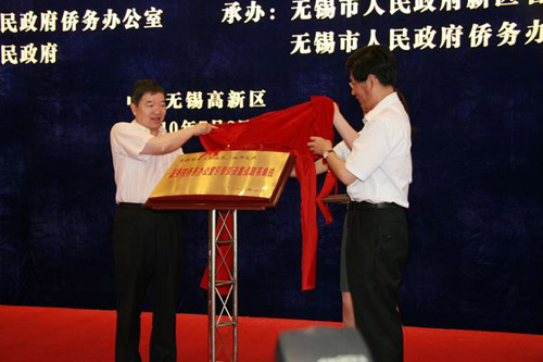 中新网7月6日电 据无锡市侨办、新区侨办消息,最近,经无锡市政府和江苏省侨办联合申报,国务院侨务办公室批复同意将无锡国家高新技术产业开发区列为“国务院侨务办公室引智引资重点联系单位”。在7月3日举行的“2010海外华侨华人高层次人才江苏行海外学者物联网(无锡)论坛”上,国务院侨办副主任任启亮和无锡市市长毛小平为其共同揭牌。