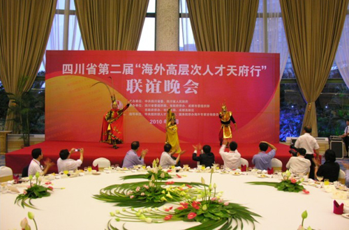 中新网7月9日电 据四川侨网消息,7月7日,成都沙湾国际会展中心宴会厅人头攒动,欢歌曼舞。四川省第二届“海外高层次人才天府行”海外人才与省内单位联谊晚会在此隆重举行,中外友人欢聚一堂,畅谈体会,加深友谊,并欣赏精彩节目。