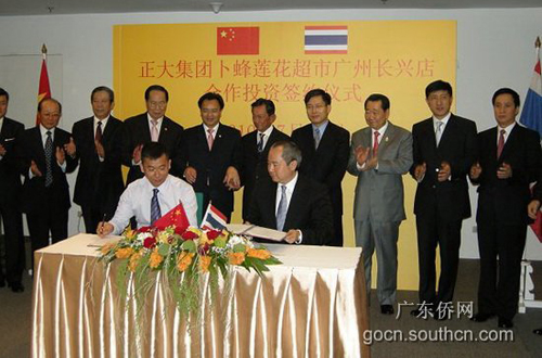 会见交流后,举行了正大集团与广州高德置地公司、广州市豪迪国际有限公司在天河区、白云区建设“卜峰莲花购物中心”的签约仪式,泰国副总理沙南、广东省副省长万庆良和谢国民等参加了见证。(乔新)