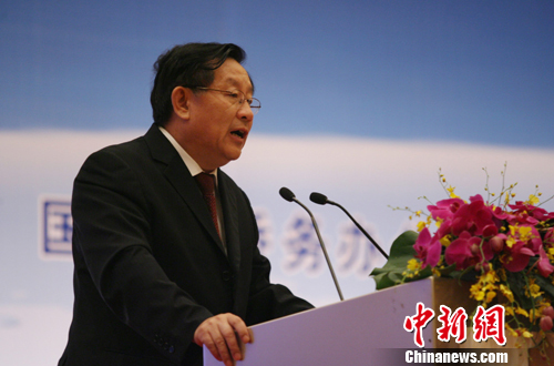 第六届世界华人论坛于7月26日至27日在广州举行,出席本届论坛的海内外代表350多人,其中海外代表190人,来自美国、加拿大、英国、德国等25个国家和地区,大多数为新能源、生物医药、金融、食品工程、信息通讯等领域的学术权威出席本届论坛。图为全国政协副主席、国家科技部部长万钢在大会开幕式上致辞。 中新社发 苏丹 摄