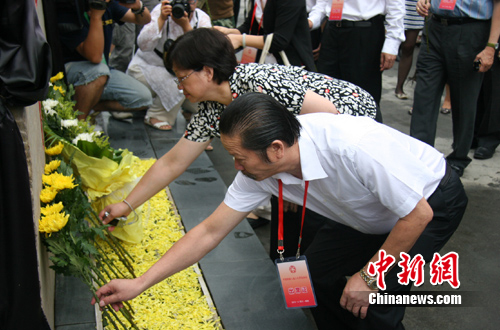 参加祭奠活动的有中国侨联常委、部分省市侨联领导、为新北川中学捐资侨胞、新北川中学建设者等,他们自发排成一列在遇难者公墓前献上菊花,并深深鞠了三个躬。