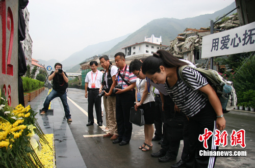 中新网北川8月17日电 (南若然)17日上午9时许,中国侨联组织160余人来到北川县城地震遗址,祭奠长眠地下的五一二地震北川县城遇难者。