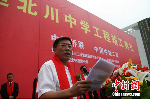 由中国侨联援建的新北川中学17日在北川县永昌镇举行了竣工典礼,林军在典礼上说,中国侨联和各援建单位没有辜负全国人民的厚望,没有辜负广大归侨侨眷、海外侨胞、港澳台同胞的重托,将质量一流、安全坚固、环境优美、和谐温馨的新北川中学呈献给北川人民。