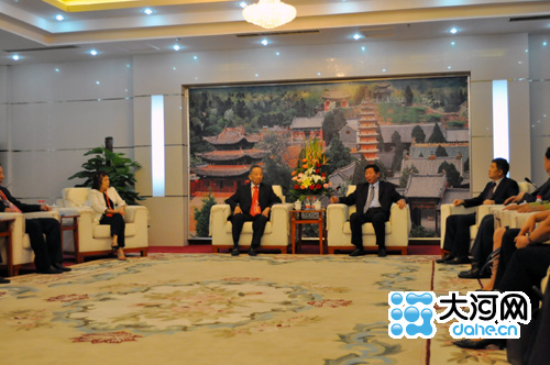 9月18日下午,河南省委常委、统战部长刘怀廉,省人大常委会副主任储亚平、副省长史济春,在平顶山分别会见参加第三届华合论坛的部分华人华侨代表,并进行友好座谈,国务院侨办副主任任启亮共同参加会见。