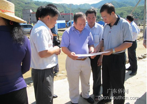 中新网10月15日电 据广东侨网消息,10月11日至12日,广东省侨办主任吴锐成率省侨办粤西“侨心居”项目工作组深入茂名重灾区——信宜市钱排镇和高州市马贵镇等地,实地考察“侨心居”援建选址,看望受灾归侨,征求受灾群众意见,并与当地政府负责人座谈,落实“侨心居”援建工作。