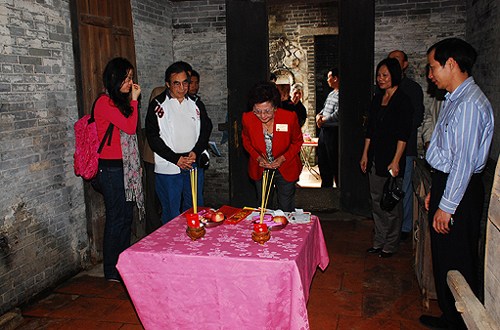 在外侨局副局长戴健松和乡亲门的陪同下,赵谭美生和丈夫赵国荣回到了古井霞路村五福里。在该村的十二巷,她们终于找到了自己的祖屋。踏进屋里,赵谭美生和丈夫赵国荣格外激动,逐一看过每一个房间,并用着不太熟练的家乡话向乡亲们讲述父辈和自己的经历。接着,她们还在祖屋里祭祖,圆了魂牵梦绕的寻根心愿。