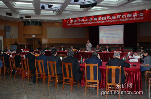 中新网11月15日电 据广东侨网消息,11月12日上午,广东省侨办与来粤出席亚运会开幕式的华裔美国民选官员访问团举行了座谈会。广东省侨办主任吴锐成出席了座谈会并发表了热情洋溢的欢迎讲话,来自美国加州地区的10位华裔民选官员及随员出席了座谈会。座谈会由广东省侨办副主任黎静主持。