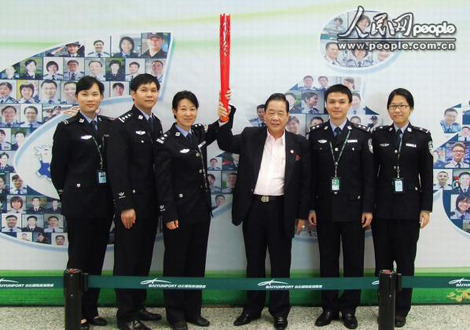 11月13日下午2时左右,一位准备出境的旅客吸引了大家的眼球,更引人注目的是他手上的亚运火炬。这位旅客便是广州市区第十七棒亚运火炬手,新加坡广东会馆馆长、广东省侨联顾问、广州市海外交流协会常务理事——何国才先生。