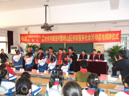 中新网11月19日电 据青岛侨联网消息,为充分发挥侨联组织海内外联系广泛和人才荟萃的独特优势,更好地发挥作用,服务社会,积极参与社会主义新农村建设,11月17日,由青岛崂山区委统战部牵头组织的崂山区侨联与南宅小学合作共建签约暨崂山区侨联服务社会活动基地揭牌仪式在南宅小学举行。青岛市侨联主席胡辛,崂山区政协副主席、区委统战部部长张永波应邀出席活动并揭牌。