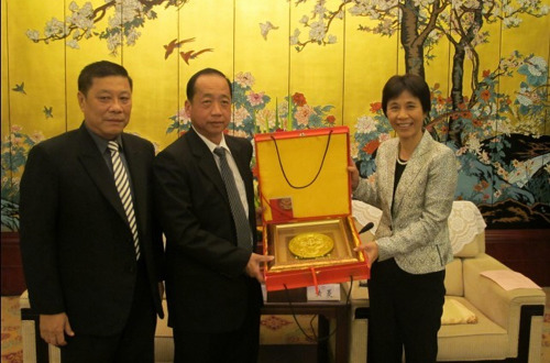 中新网11月19日电 据福建侨网消息,11月10日晚,福建省厦门市副市长黄菱在厦门宾馆会见并宴请了马来西亚麻坡福建会馆访问团一行,热情欢迎这40位福建乡亲来厦旅游考察。
