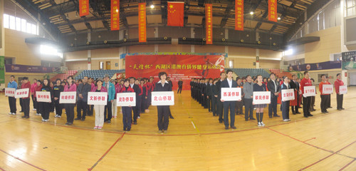 健身运动会开幕式上,浙江省侨联副主席、市侨联主席章明伟发表了热情洋溢的讲话,他说,在全市上下满怀豪情学习贯彻党的十七届五中全会精神,奋发进取为构建“生活品质之城”献策出力之际,西湖区隆重举办的“天煌杯”港澳台侨界健身运动会,这既是西湖区港澳台侨界的一次盛会,是对西湖区港澳台侨界群众性文体活动成果的一次检阅,也是贯彻上级侨联“组织起来,活跃起来”工作要求的具体体现。