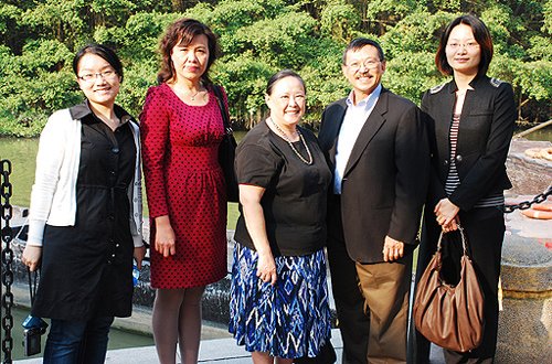 随后,他们相继寻访了赵氏宗祠和在建的新会古井新四中校区。在赵氏宗祠里面,赵中求还将一副珍贵的“全家福”照片赠送给赵氏宗祠。而在新四中里面,赵中求还以其母亲林春美的名义捐资5万元人民币支持新四中的建设。