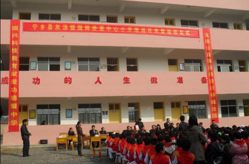 中新网11月26日电 据湖南外侨网消息,11月23日上午,湖南省宁乡县灰汤镇中心小学内鼓乐齐鸣,彩旗飘飘,由香港联和国际集团董事长谢国辉夫妇捐赠40万元襄肋兴建的“国辉侨爱教学楼”竣工庆典在这里举行。谢国辉夫妇及其公司员工、香港轩辕教育基金会主席罗文春等亲临落成庆典。